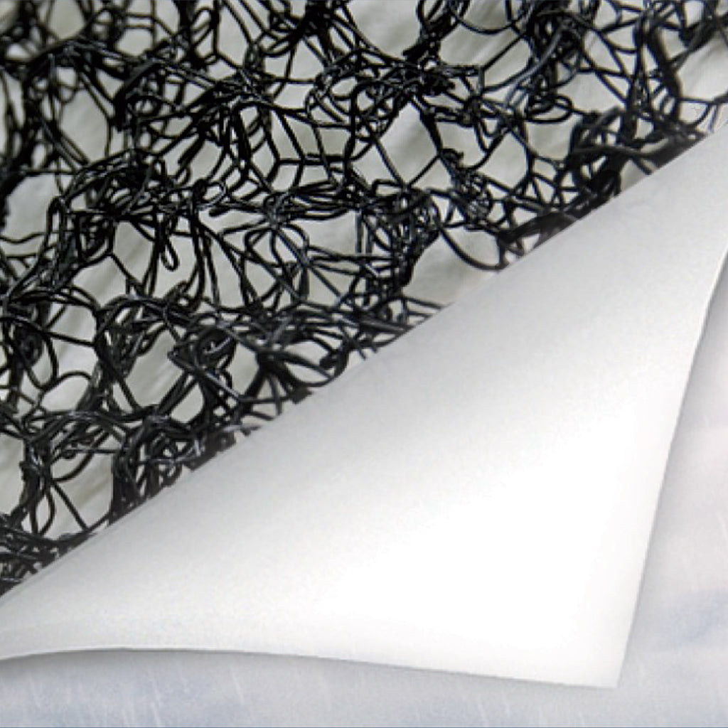 The product is produced from an extruded polymer matrix of tangled, randomly oriented monofilaments. The polymer matrix is then shaped into a series of parallel, porous channels designed to allow flow in all directions. It is then attached (heat bonded) to a polyester nonwoven filter fabric designed to prevent soil or sediment from entering the matrix of the system, while providing ample flow of water.