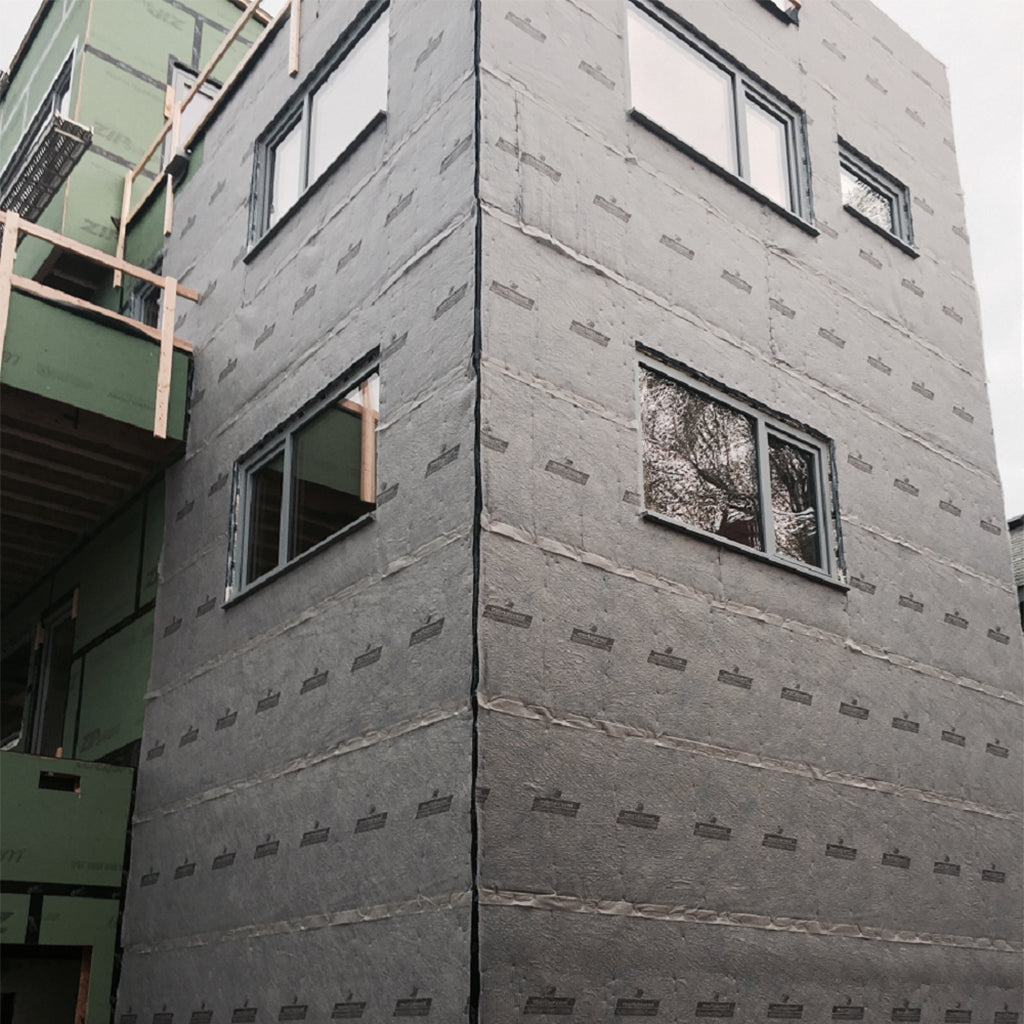 • 2-ply design features a backer fabric that improves the tensile and compressive strength properties of the system. The fabric also serves to deflect mortar when used with stucco or a masonry veneer siding.
